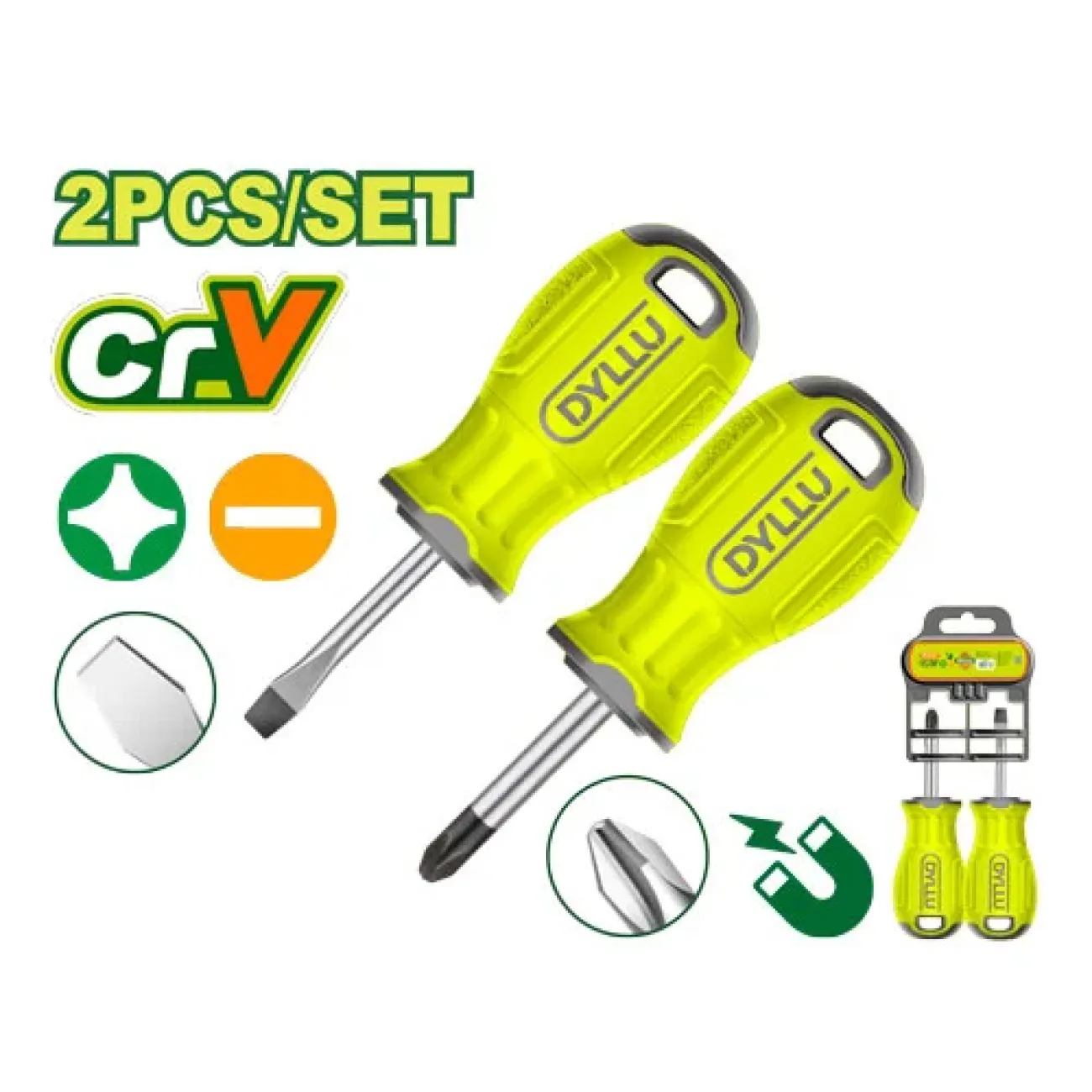 2 հատ պտուտակահանի հավաքածու Dyllu DTSS1202Հավաքածուն ունի 2 հատ պտուտակահան  հարմարավետ Էրգոնոմիկ բռնակով, բնիկի նյութը բարձր որակի մետաղից է և մագնիսով, որը թույլ է տալիս աշխատանքը կատարել արագ և որ...