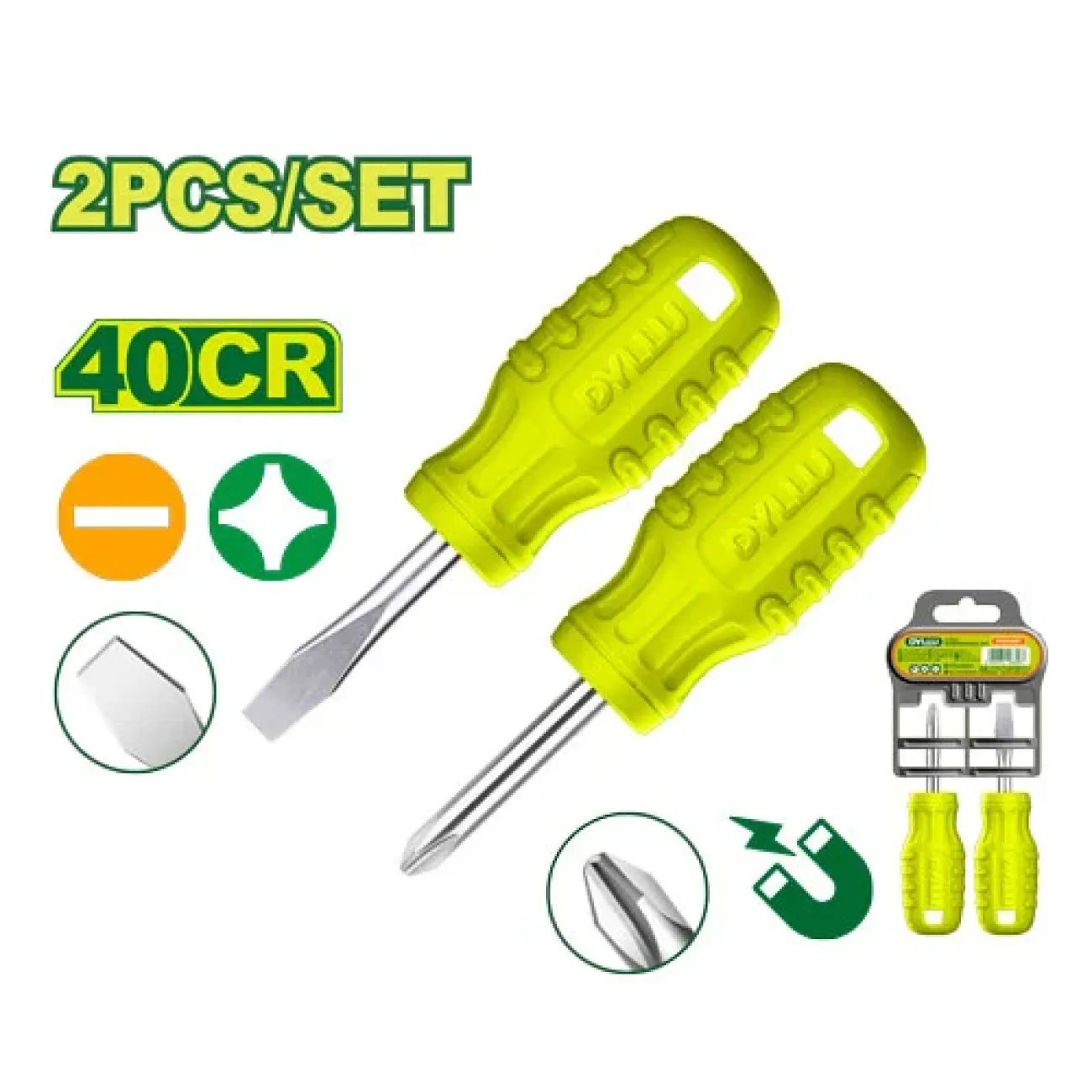 2 հատ պտուտակահանի հավաքածու Dyllu DTSS2202Հավաքածուն ունի 2 հատ պտուտակահան  հարմարավետ Էրգոնոմիկ բռնակով, բնիկի նյութը բարձր որակի մետաղից է և մագնիսով, որը թույլ է տալիս աշխատանքը կատարել արագ և որ...