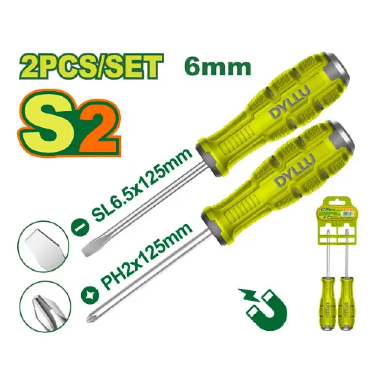 2 հատ պտուտակահանի հավաքածու Dyllu DTSSA402Հավաքածուն ունի 2 հատ պտուտակահան  հարմարավետ Էրգոնոմիկ բռնակով, բնիկի նյութը բարձր որակի մետաղից է և մագնիսով, որը թույլ է տալիս աշխատանքը կատարել արագ և որ...