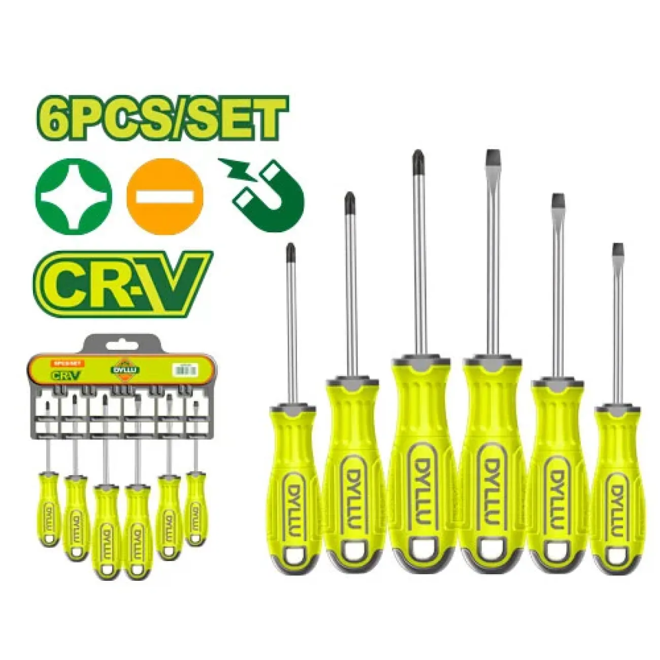 6 հատ պտուտակահանի հավաքածու Dyllu DTSS1206Հավաքածուն ունի 6 հատ պտուտակահան  հարմարավետ Էրգոնոմիկ բռնակով, բնիկի նյութը բարձր որակի մետաղից է և մագնիսով, որը թույլ է տալիս աշխատանքը կատարել արագ և որ...