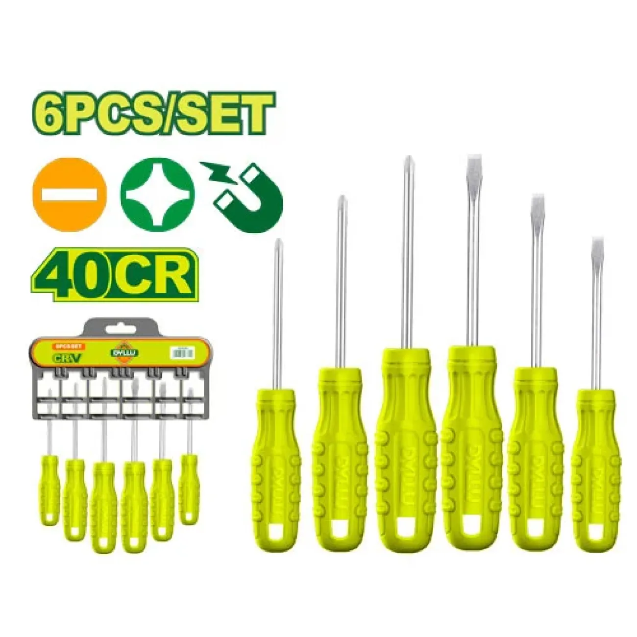 6 հատ պտուտակահանի հավաքածու Dyllu DTSS2206Հավաքածուն ունի 6 հատ պտուտակահան  հարմարավետ Էրգոնոմիկ բռնակով, բնիկի նյութը բարձր որակի մետաղից է և մագնիսով, որը թույլ է տալիս աշխատանքը կատարել արագ և որ...