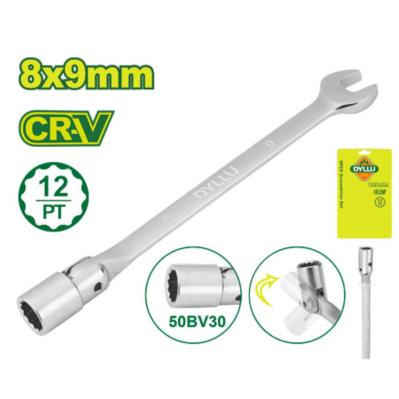 Երկկողմանի ճկուն վարդակով բանալի 180 մմ (Չափս՝ 8x9 մմ) Dyllu DTTH2E01