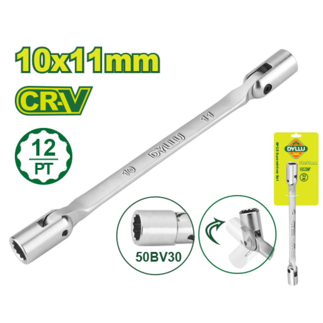 Երկկողմանի ճկուն վարդակով բանալի 196 մմ (Չափս՝ 10x11 մմ) Dyllu DTTH2E02