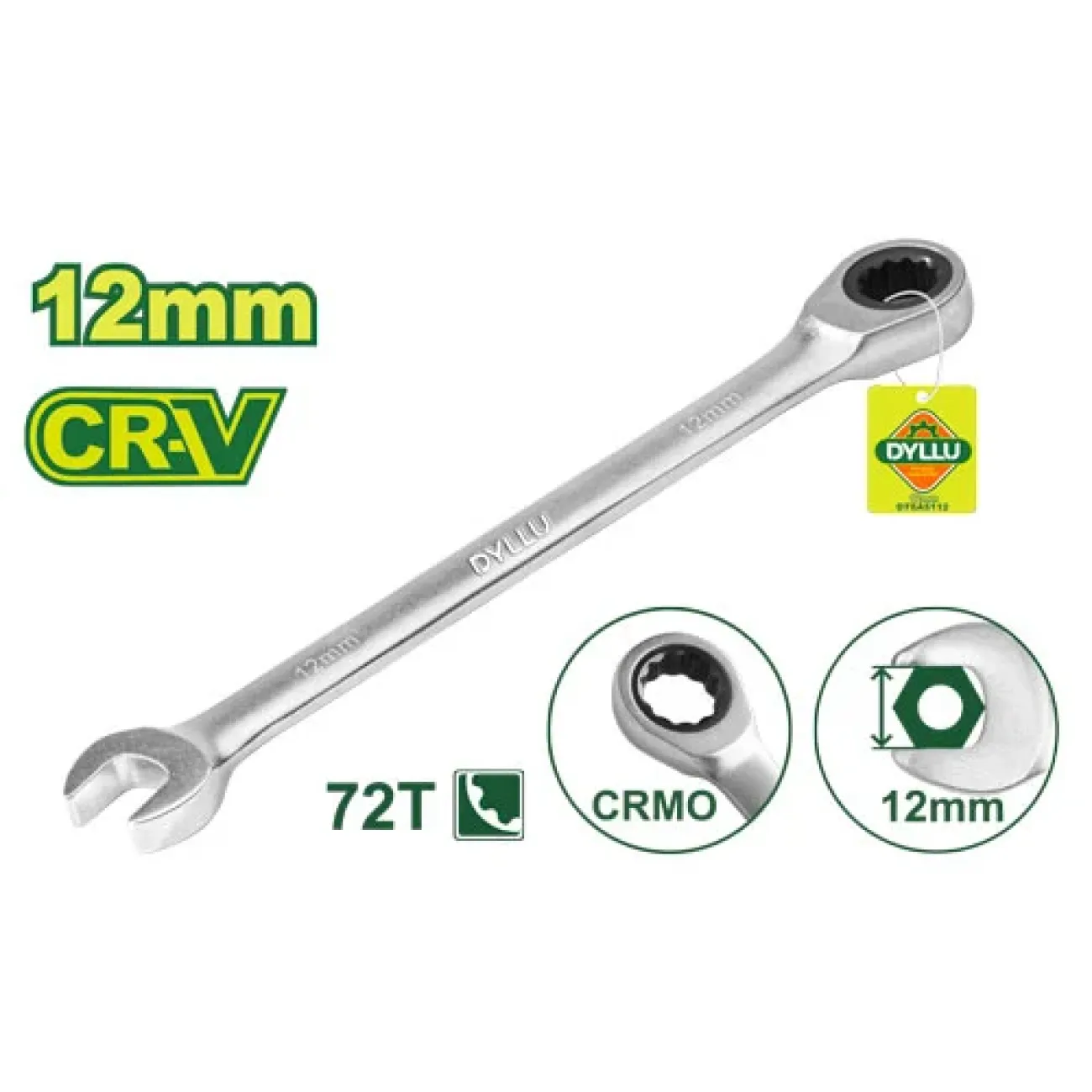 Համակցված  բանալի ճռիկով 171 մմ Dyllu DTSA5112Համակցված  բանալի ճռիկով 12 մմԵրկարությունը՝ 171 մմՄարմնի նյութը՝ Cr-VԳլխի նյութը՝ CrMo RatchetDrop , կարծրացվածՔրոմապատ, անփայլ ծածկույթՓաթեթավ...