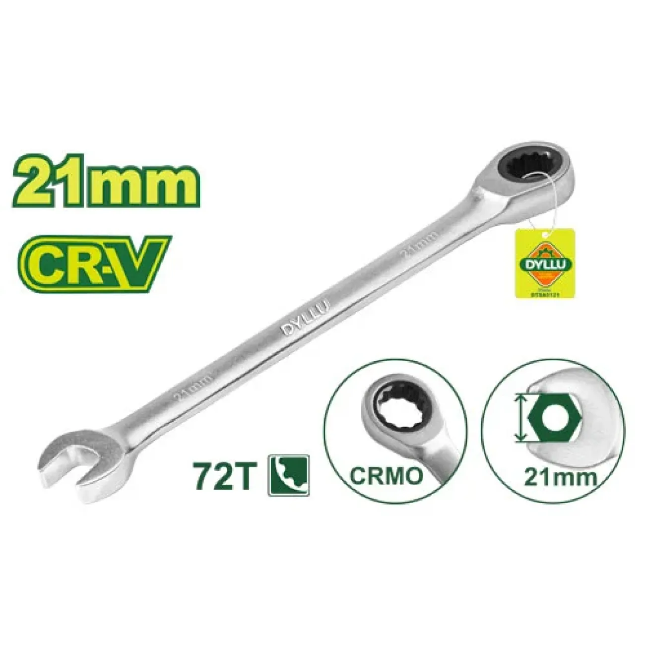 Համակցված  բանալի ճռիկով 286 մմ Dyllu DTSA5121Համակցված  բանալի ճռիկով 21 մմԵրկարությունը՝ 286 մմՄարմնի նյութը՝ Cr-VԳլխի նյութը՝ CrMo RatchetDrop , կարծրացվածՔրոմապատ, անփայլ ծածկույթՓա...
