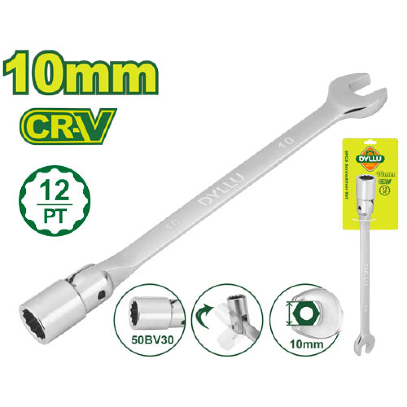 Համակցված և ճկուն վարդակով բանալի 160 մմ (Չափս՝ 10 մմ) Dyllu DTTH1E10