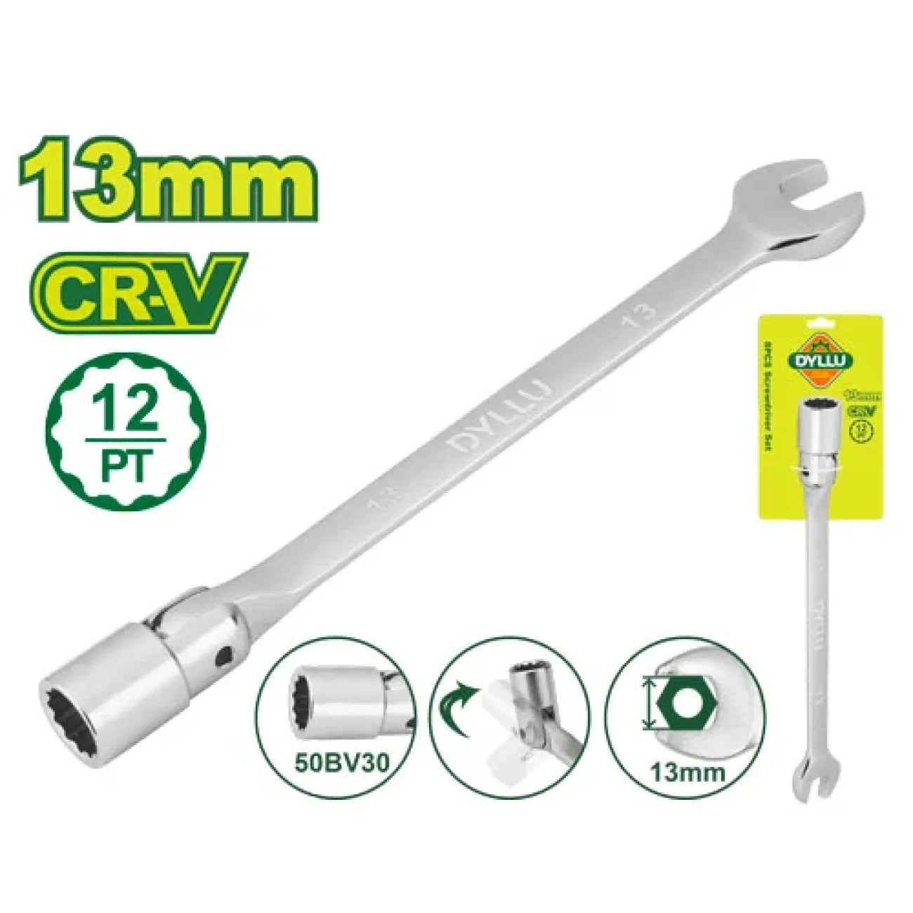 DYLLU - Համակցված և ճկուն վարդակով բանալի 207 մմ (Չափս՝ 13 մմ) DTTH1E13 - DTTH1E13 - Բանալիներ (ключи)