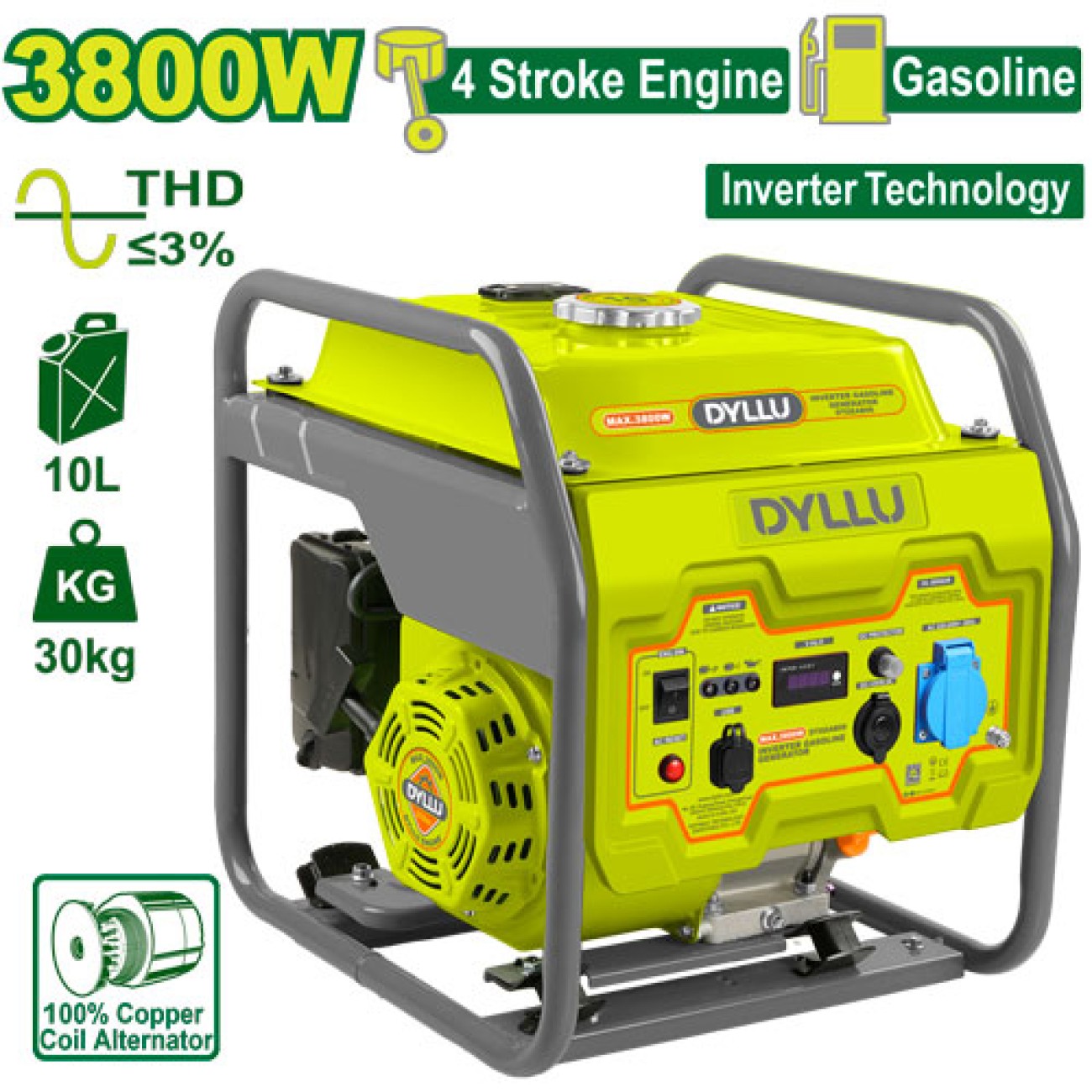 DYLLU - Ինվերտորային բենզինային գեներատոր (մեկնարկիչով) 3800 Վտ DTGEAB06 - DTGEAB06 - Գեներատորներ