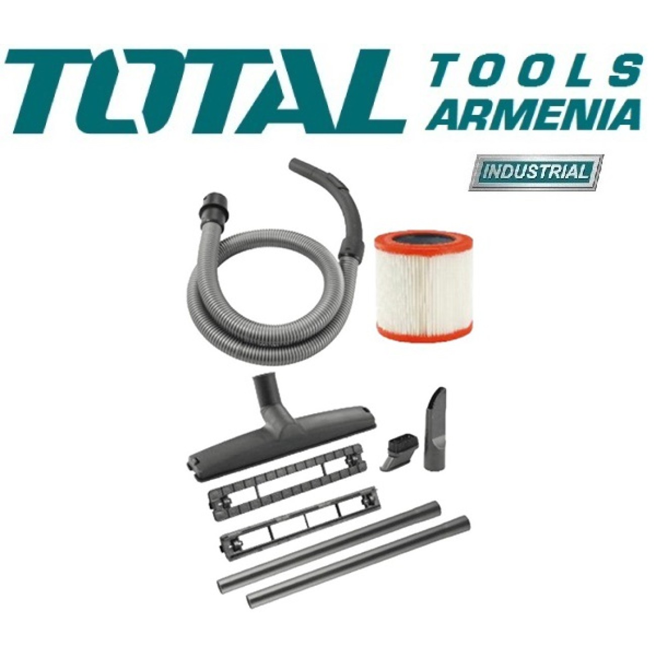 Կոմպլեկտում ներծծող խողովակ 1․5 մ - 1 հատ, Գործվածքի ֆիլտր - 1 հատ, Փրփուրի ֆիլտր - 1 հատ, Ճեղքային վարդակ 2-ը 1-ում - 1 հատ, գլխիկ գորգերի համար - 1 հատ: