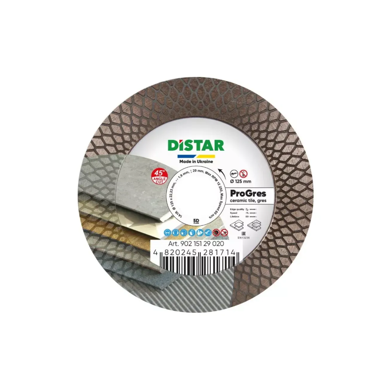 Առջևի կողմում գտնվող 1A1R PRO Gres կտրիչ սկավառակը ունի 20 մմ լայն ադամանդակիր շերտ: Բացի կտրումից, լայն շերտը թույլ է տալիս արդյունավետորեն ավազով ավազով քսել սալիկի ծայրը, հարթել անկանոնությունները և կատարել կոր կտրում: