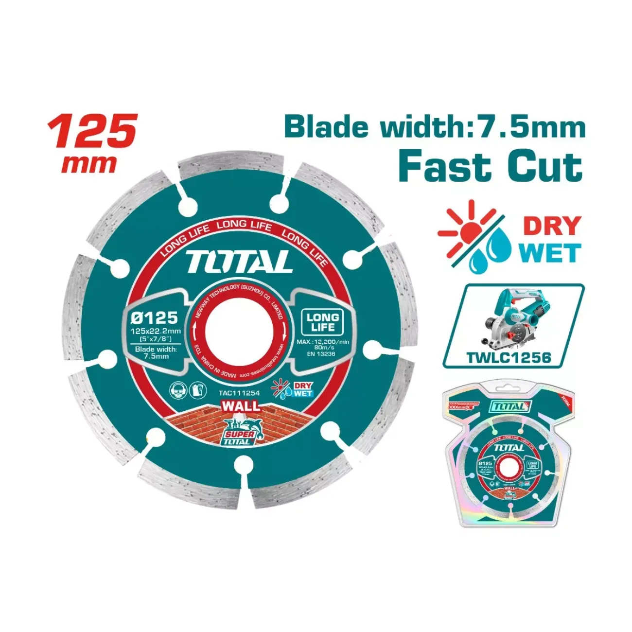 Նկարագրություն Ալմաստե սկավառակ չոր 125x22.2մմ TOTAL TAC111254