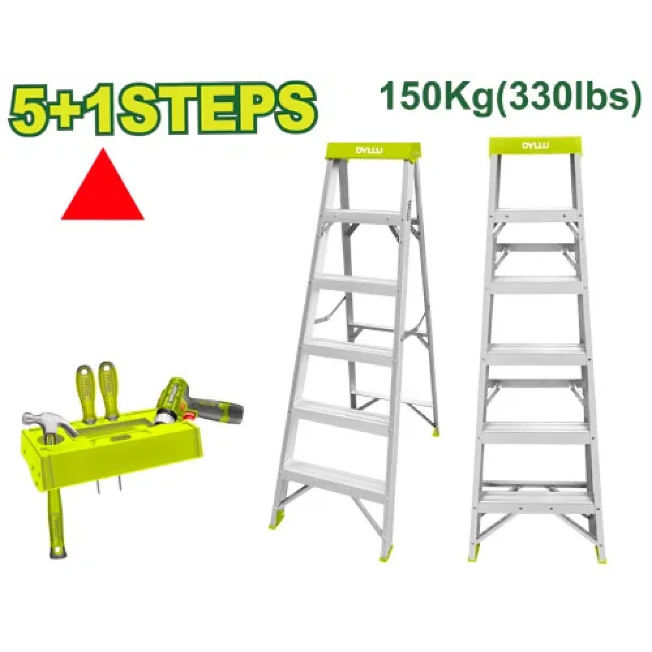 Ալյումինե միակողմանի աստիճան 5+1 քայլ  DTLD2H05Նյութը՝ ալյումինՔայլեր՝ 5+1 քայլԲաց չափս՝ 492*1077*1411 մմՓակ չափս՝ 492*154 *1552 մմՔայլ բարձրացում՝ 252 մմՄոտ 4,2 կգ քաշԱռավելագույն ծանրաբեռնվածություն՝ 150...