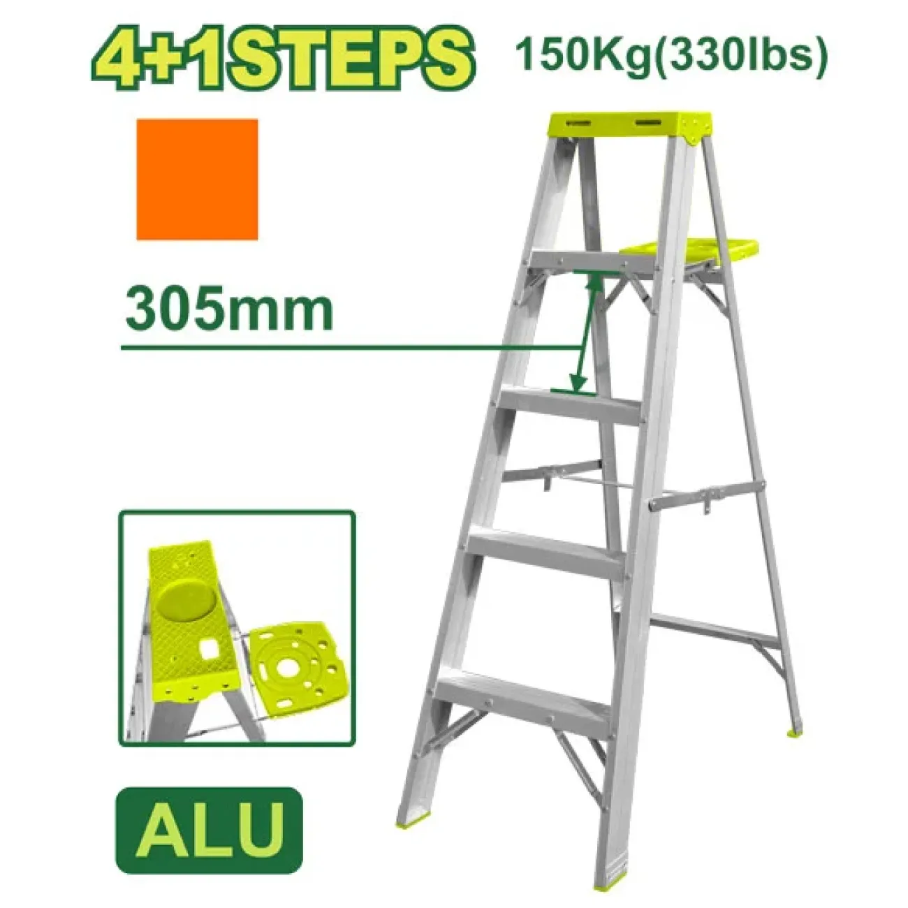 Հիմնական բնութագրերը Ալյումինե միակողմանի աստիճան (գործիքների սկուտեղով) 4+1 քայլ DTLD4H05