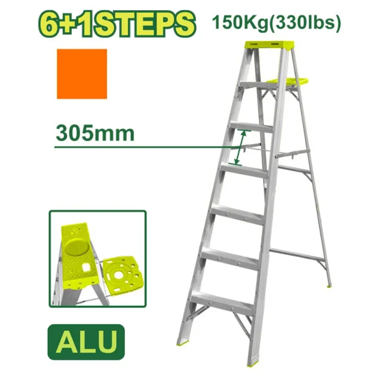 Հիմնական բնութագրերը Ալյումինե միակողմանի աստիճան (գործիքների սկուտեղով) 6+1 քայլ DTLD4H07