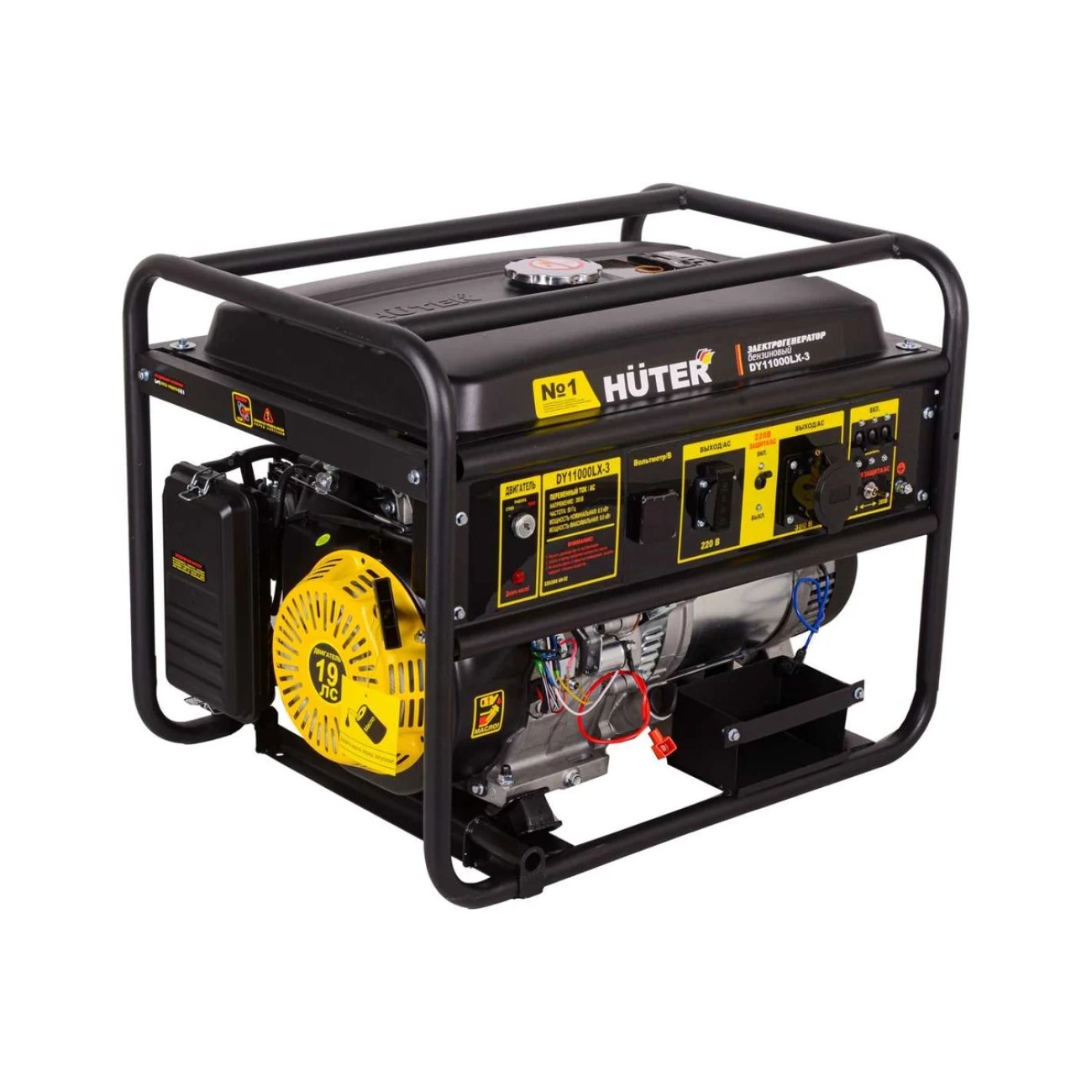 Հիմնական բնութագրերը Բենզինային գեներատոր եռաֆազ (մեկնարկիչով) 2800 Վտ(220 Վ) /9000 Վտ(380 Վ) Huter DY11000LX-3