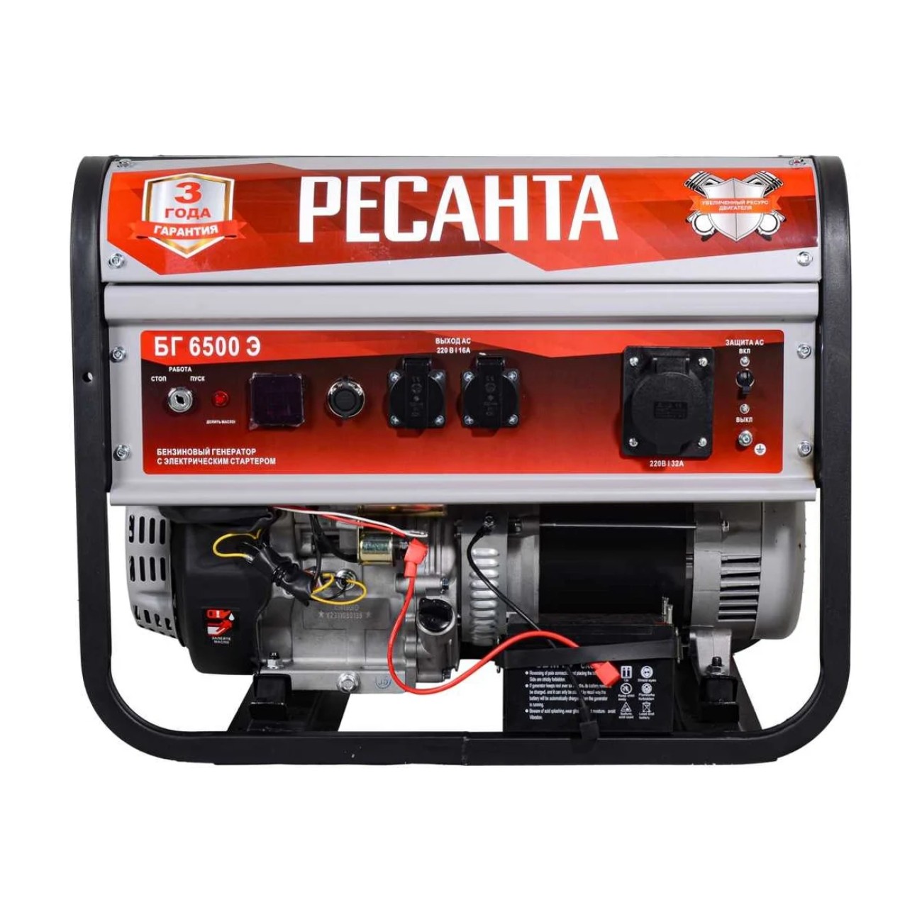 Բենզինային շարժիչով աշխատող էլեկտրոգեներատորը գործարկելու համար տրամադրվում է էլեկտրական մեկնարկիչ՝ սնուցվող մարտկոցով, որը ներառված է ագրեգատի հիմնական փաթեթում: Մոդելը ստացել է արագության կառավարման համակարգ, որը թույլ է տալիս զգալիորեն խնայել վառելիքն ու ռեսուրսը։ Կա պաշտպանություն գերբեռնվածությունից և կարճ միացումներից: Նախագծում ներառված է նաև յուղի մակարդակի մոնիտորինգի համակարգ, որը թույլ չի տալիս գործարկել էլեկտրոգեներատորը, եթե դրա մակարդակը բավարար չէ: Resanta BG 6500E-ն ունի ամրացված շրջանակ։