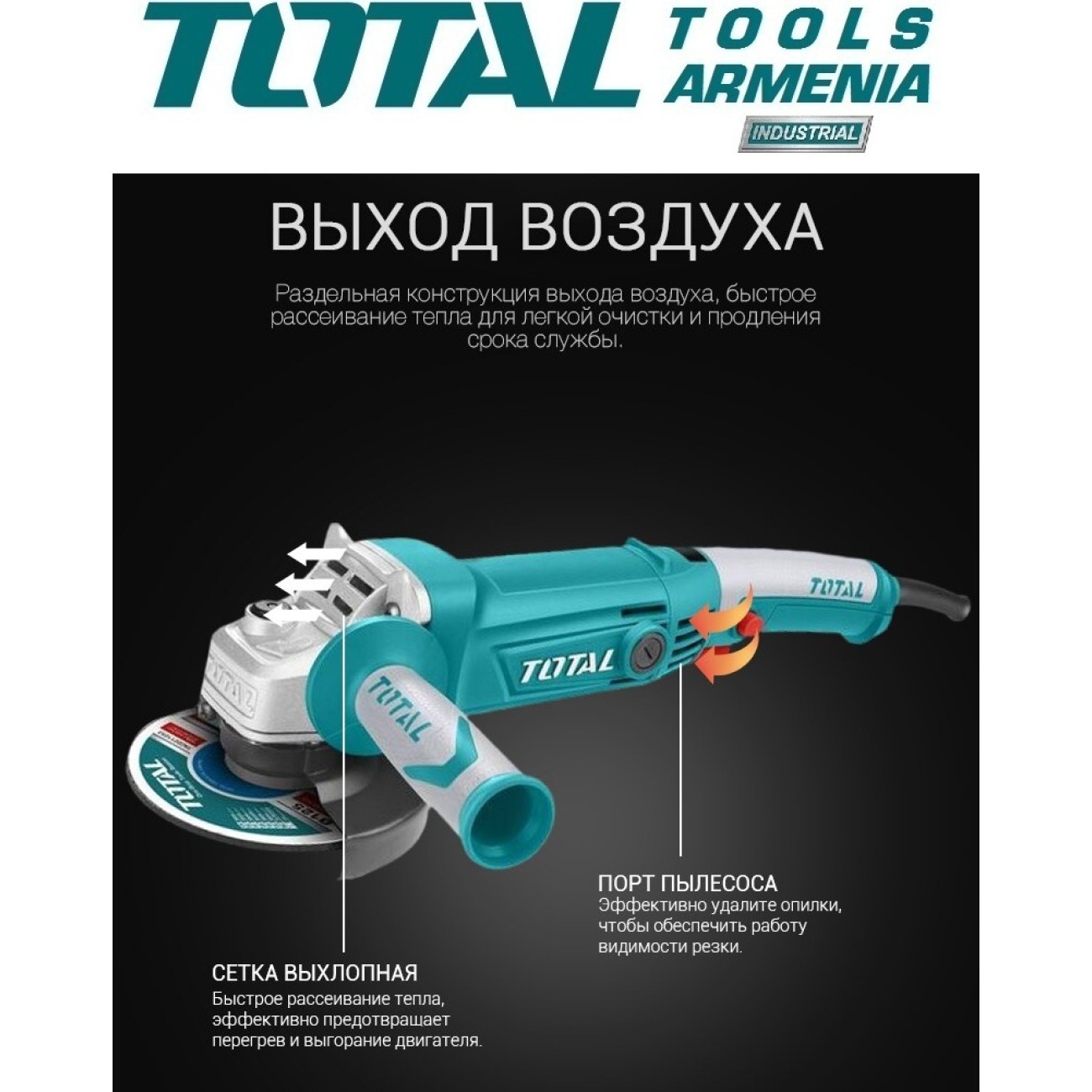 -Անկյունային հղկող մեքենա (Բալգարկաներ) Total TG1121256 - անփոխարինելի գործիք բազում շինարարական աշխատանքների համար: