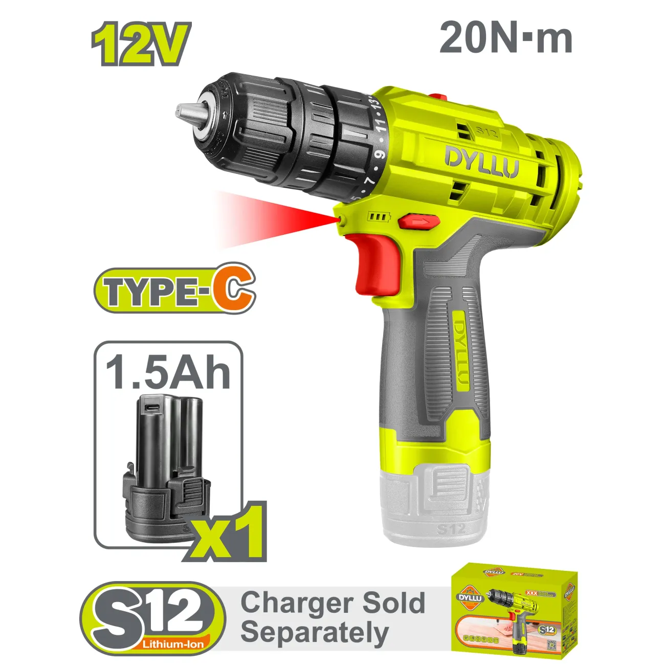 Մարտկոցային պտուտատակադարձիչ (դռել) 12 Վ / 1․5 Ա / 20 Նմ / Dyllu DTCDS510