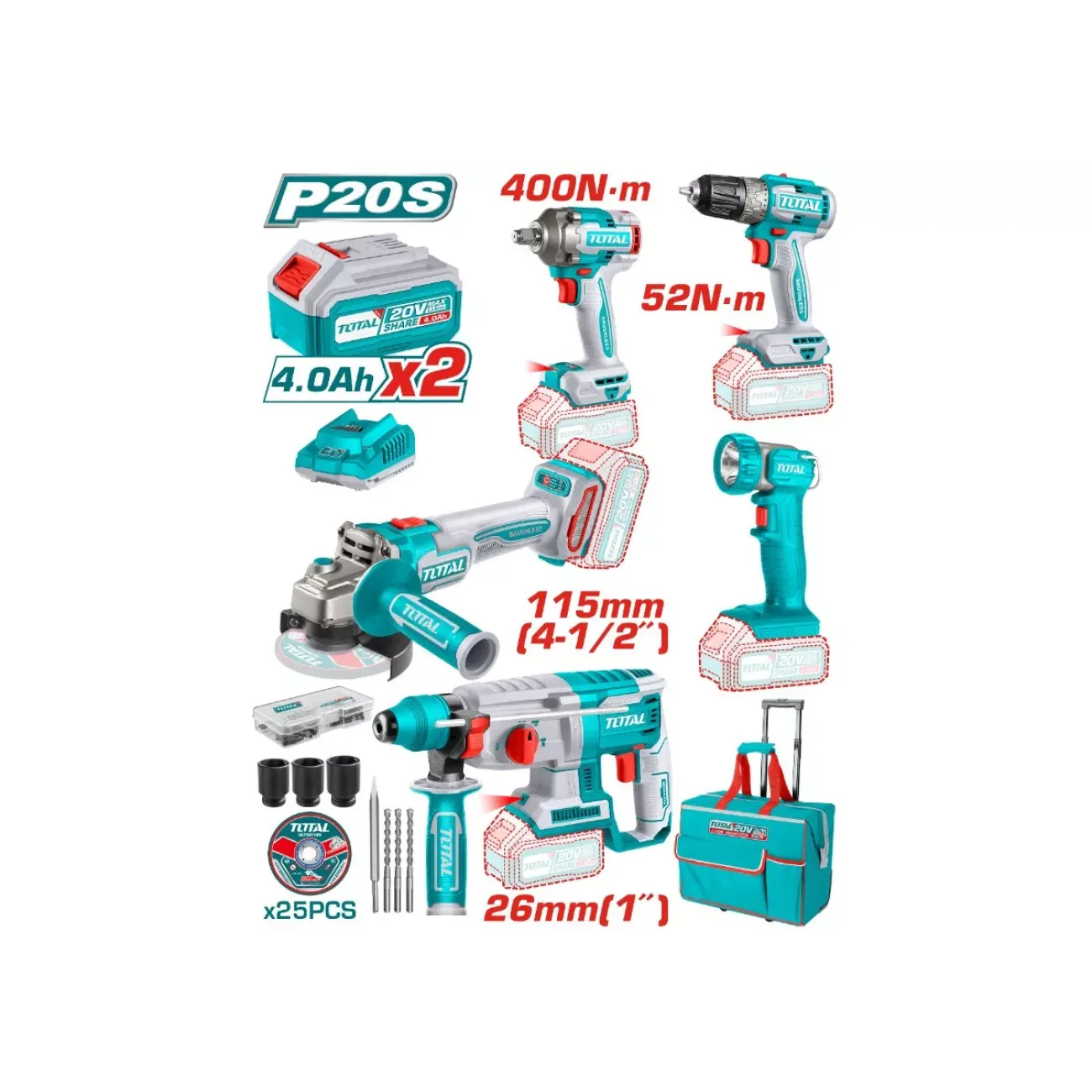 TotalTools - Լիթիում - իոնային համակցված արդյունաբերական հավաքածու 5 հատ - TCKLI2058 - Հորատիչներ
