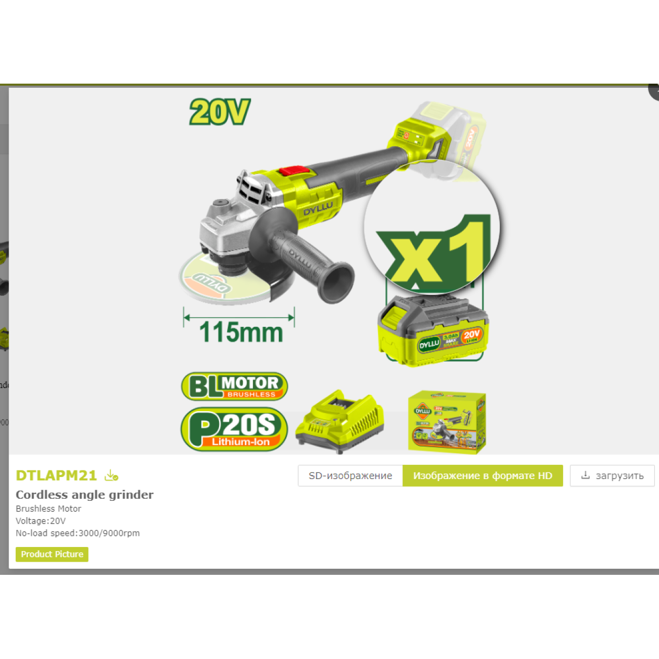 Անկյունային հղկող մեքենա (Բալգարկա) 20 Վ 115 մմ Dyllu DTLAPM21