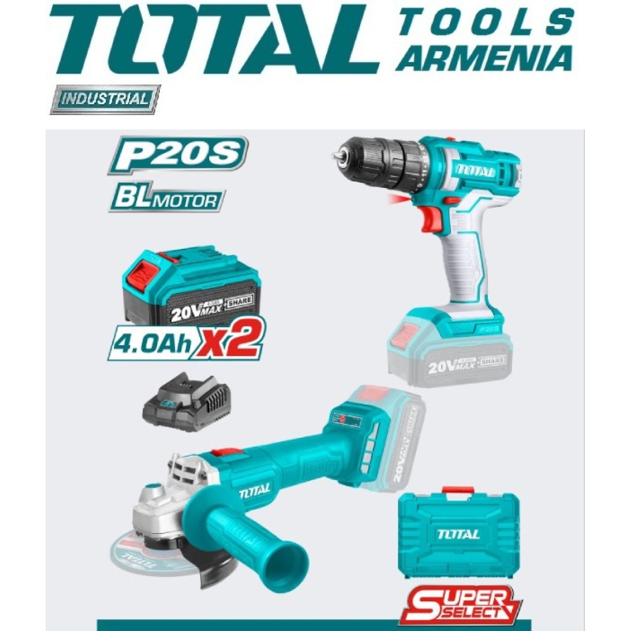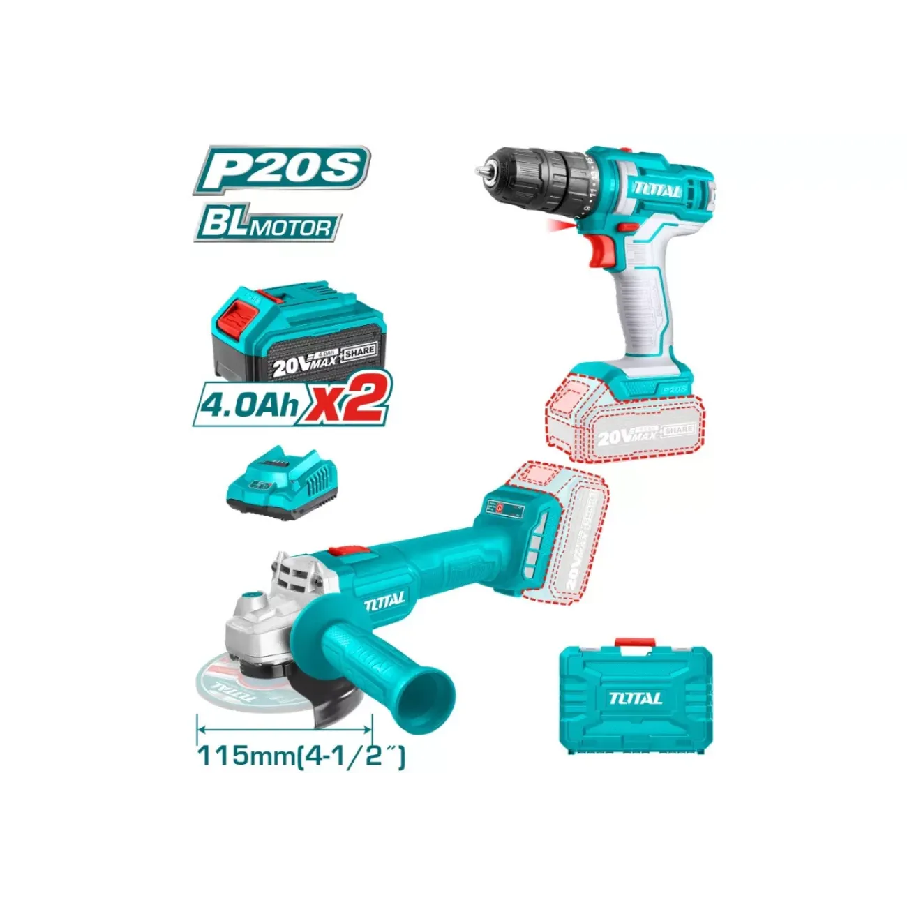 Անկյունային Հղկող Մեքենա և Գայլիկոնիչ (դռել) 20 Վ / 4 Ա TOTAL TCKLI20157