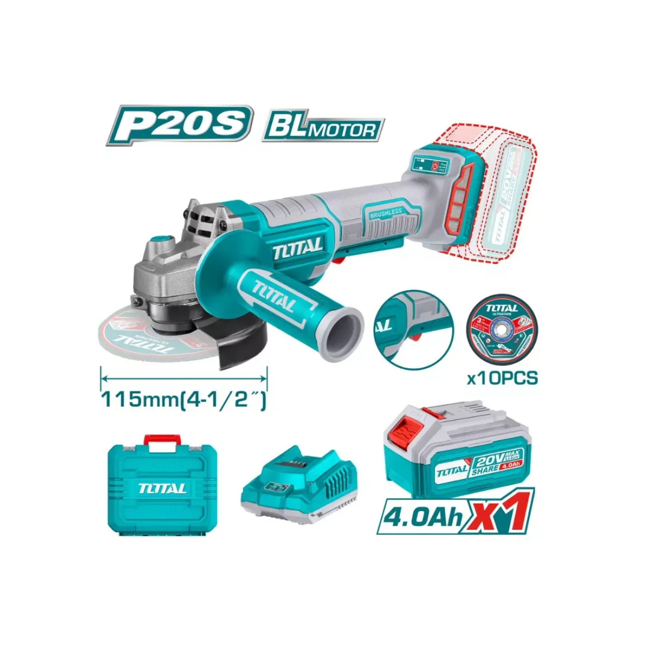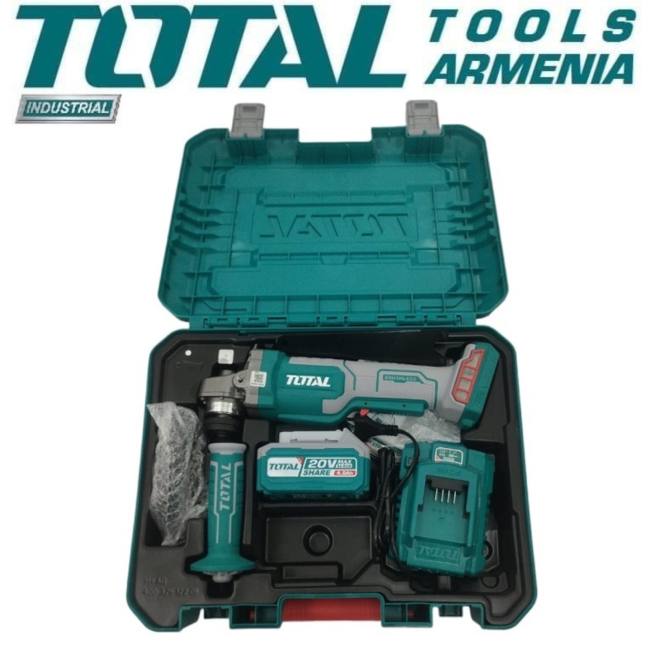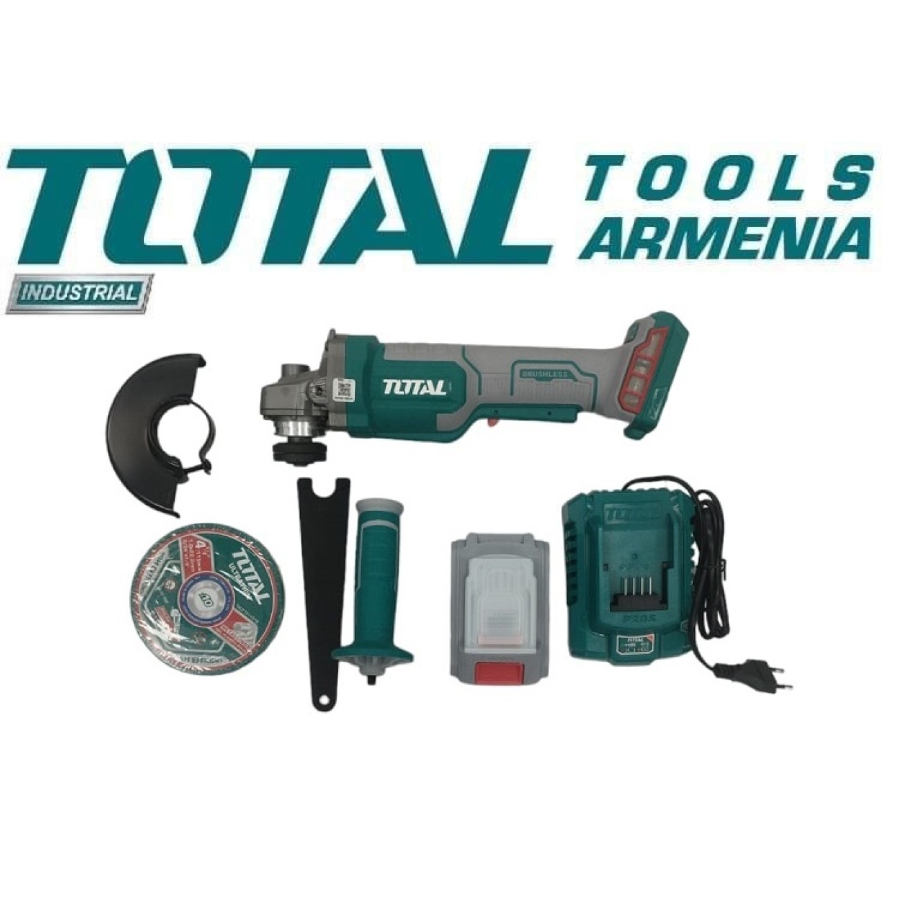 - Մարտկոցով աշխատող անկյունային հղկող մեքենա Total TAGLI2111561- ը օգտագործում է 20 վ մարտկոց, ինչը թույլ է տալիս աշխատել ավելի արագ և հարմարավետ :