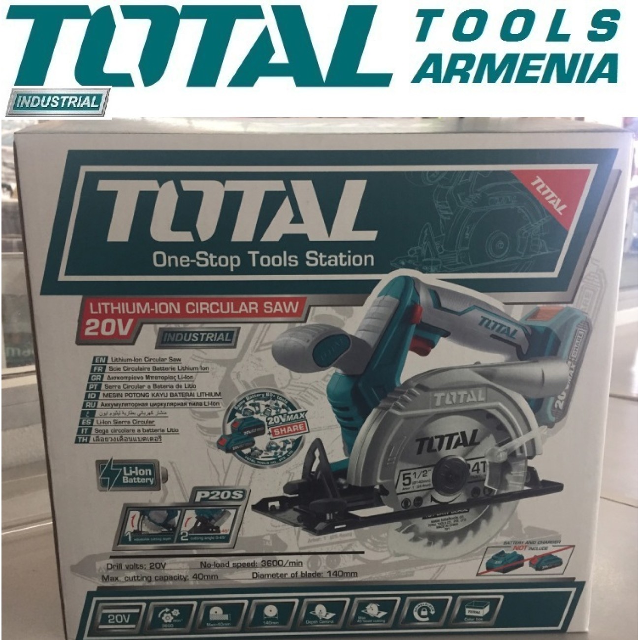 Մարտկոցային սկավառակային սղոց 20 Վ TOTAL TSLI1401Մարտկոցային սկավառակային սղոցն ունի պաշտպանիչ պատյան, որը հնարավորություն է տալիս աշխատել դրանով ավելի անվտանգ և ունի բռնակ, որը հնարավորություն է տալիս օգտագործել այն ավե...