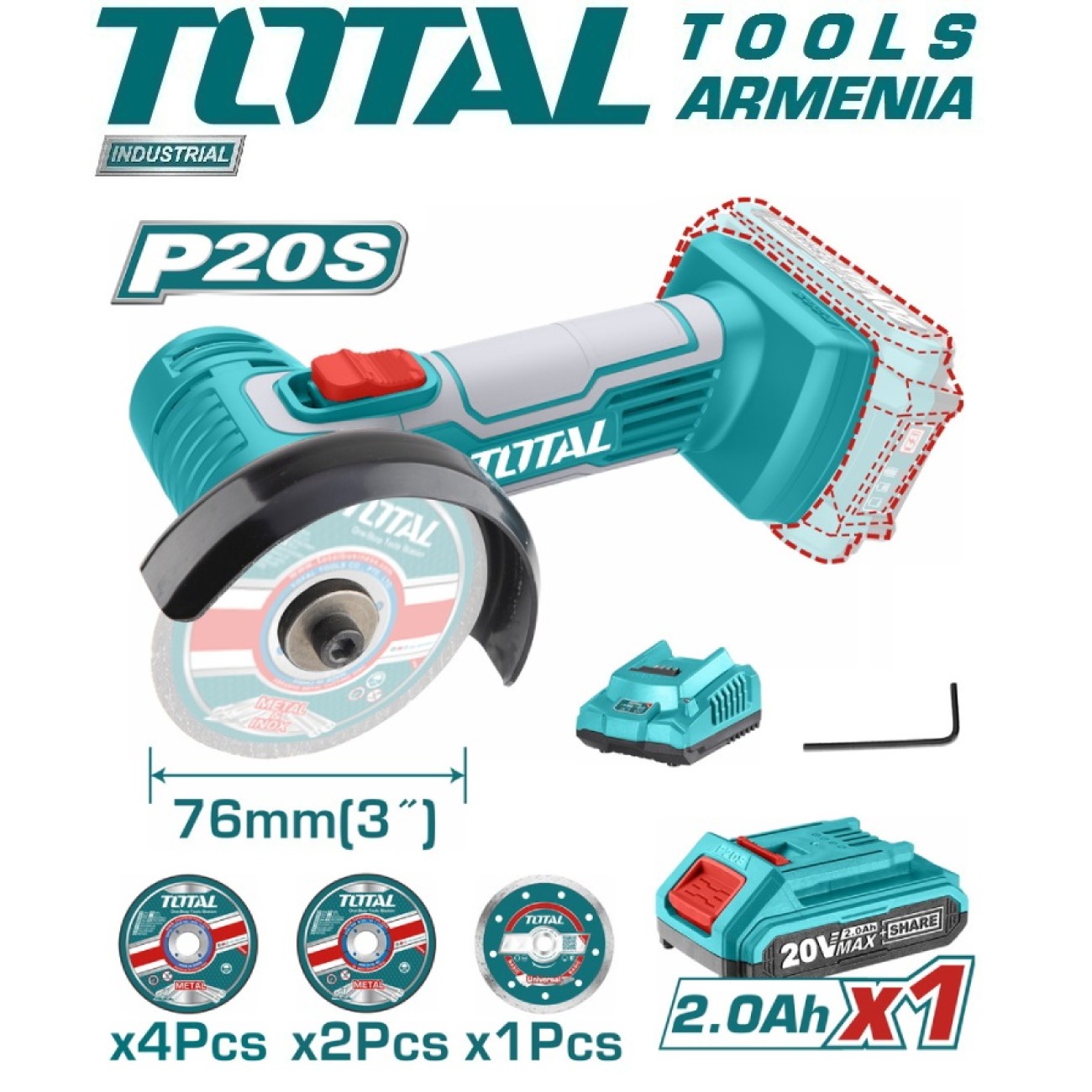 Կոմպլեկտում Հավաքածուն ներառում է՝ 1 հատ 2.0 Ա*ժ մարտկոց (TFBLI20011) 1 հատ լիցքավորիչ (TFCLI2001) 4 հատ մետաղ կտրող սկավառակ 2 հատ մետաղ հղկող սկավառակ 1 հատ թաց ադամանդե սկավառակ 1 հատ պատրոնի բանալի Երաշխիքը ՝ 2 տարի
