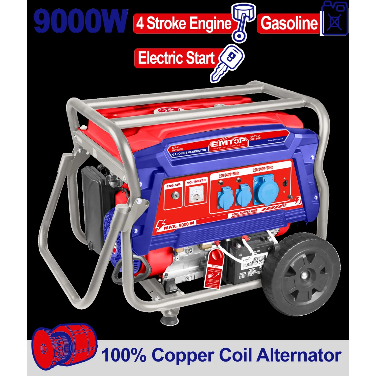 Հիմնական բնութագրերը Բենզինային գեներատոր (մեկնարկիչով) 9000 Վտ EMTOP EGGRD9011