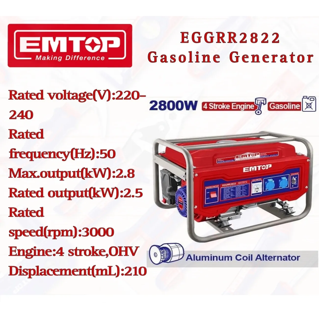 Հիմնական բնութագրերը Բենզինային գեներատոր 2800 Վտ EMTOP EGGRR2822