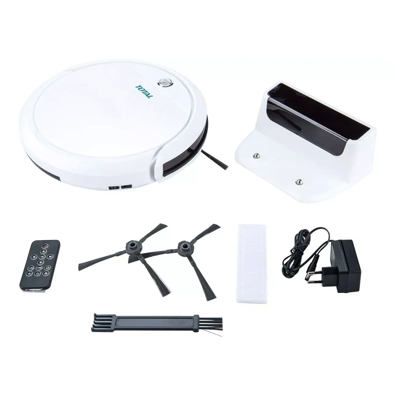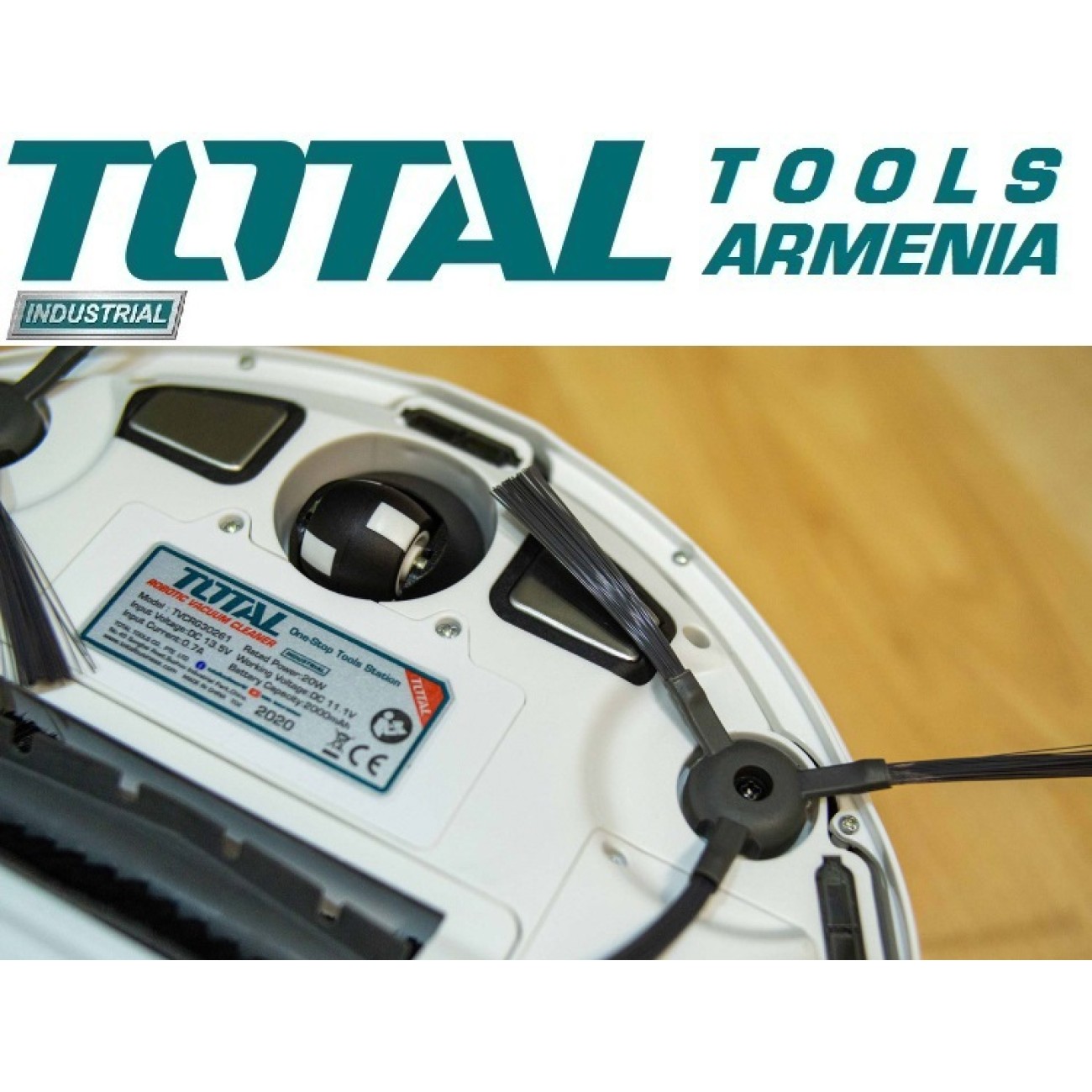 • Total TVCRG30261 - ռոբոտ փոշեկուլը ավտոմատ կերպով մաքրում է ձեր տունը ,  գերժամանակակից գործառույթների շնորհիվ կանխելով անկումը  և  բախումը : Ռոբոտ փոշեկուլը իր կոմպակտ և բարակ դիզայնով ( 30 x 7,5 սմ ) հեշտացնում է դժվարամատչելի տեղերը, ինչպիսիք են մահճակալի կամ պահարանի տակը : Ավտոմատ մեխանիզմով ռոբոտ փոշեկուլը , հատակը մաքրելու համար դիմային մասում օգտագործում է 2 մաքրող խոզանակ և փոշեկուլ : Ռոբոտները շարժվում են ճկուն և շարունակաբար ՝ ձեր հատակը մաքուր պահելու համար :Ռոբոտը դիմացկուն է բախումներին և ունի անկման սենսոր ՝ ձեր փոշեկուլը անվտանգ պահելու համար :