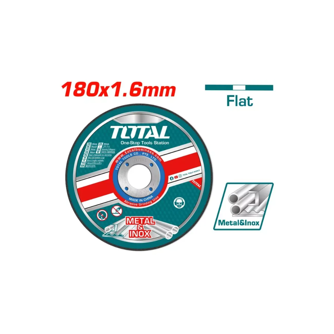 Հիմնական բնութագրերը Մետաղ կտրող սկավառակ 180x1.6x22.2 մմ TOTAL TAC2211802
