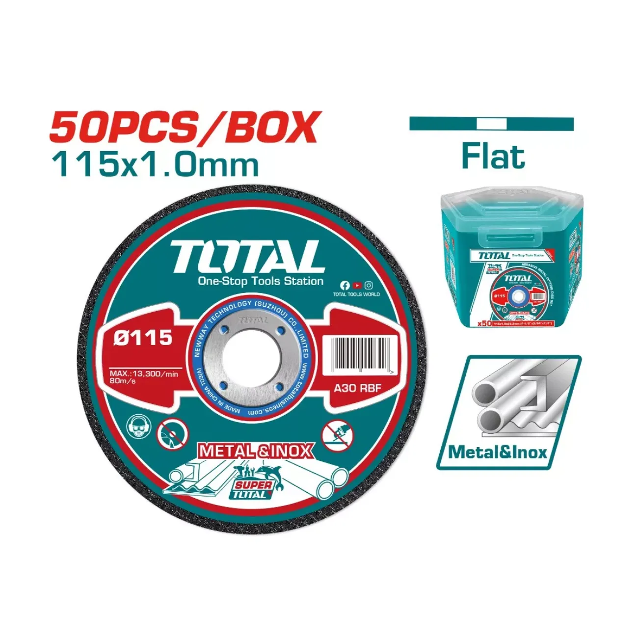Նկարագրություն Մետաղ կտրող սկավառակի հավաքածու 50 հատ 115x1.0x22.2 մմ TOTAL TAC20111550