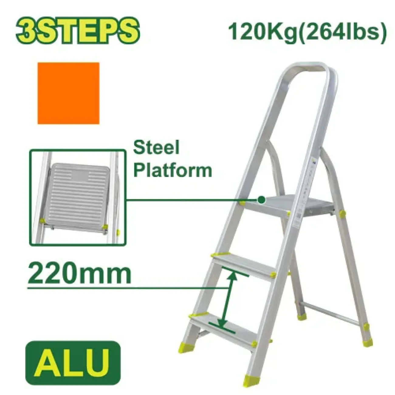 Հիմնական բնութագրերը Պողպատե և ալյումինե կենցաղային աստիճան 3 քայլ DTLD3H03