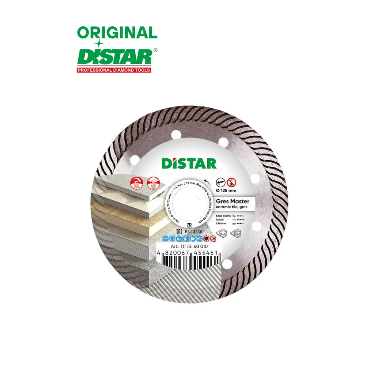 Gres Master սկավառակը նախատեսված է հատուկ նման բարդ կիրառման պայմանների համար: Ադամանդակիր շերտի խճճված տուրբո լիցքավորվող ակոսներն արդյունավետորեն ներթափանցում են դիմացկուն նյութի մեջ՝ սառեցնելով կտրման գոտին: Սկավառակը նրբորեն մտցվում է նույնիսկ ամենահաստ ճենապակե քարե իրերի մեջ: