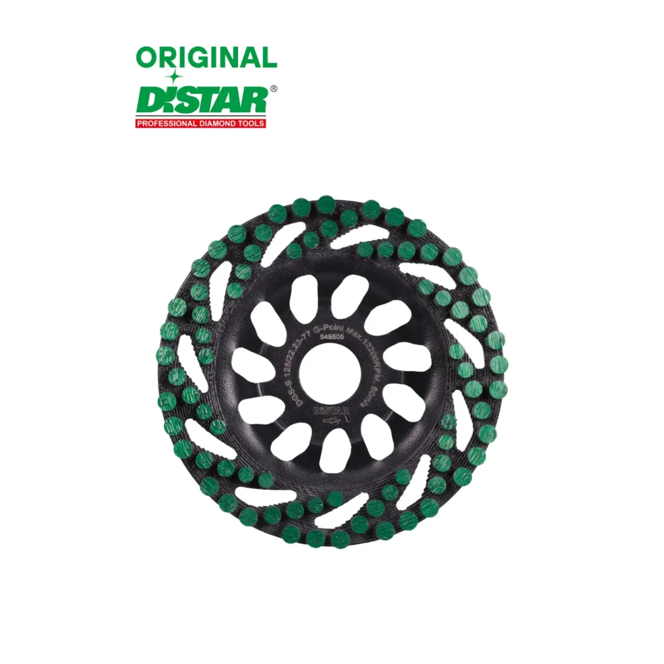 Ինքնահավասարեցնող հատակի, ամուր բետոնի մանրացում կամ ներկի կամ պոլիմերային ծածկույթի հեռացում-հեշտ է Green Point-ի հետ: 77 ադամանդե հատվածների շնորհիվ ցանկացած նյութ "հալվում" է կտրիչի տակ ։  Թեթև պատյանը նպաստում է ձեր ՈՒՍՄ-ի ավելի քիչ մաշվածությանը և բարձրացնում է աշխատանքի հարմարավետությունը, որը պատրաստված է ամուր պողպատից ՝ անվտանգ շահագործման համար: Պատյանում մեծ թվով անցքեր թույլ են տալիս արդյունավետորեն ընտրել փոշին (պատյանների օգտագործմամբ): Արտաքին տրամագիծը 125 մմ է ։ վայրէջքի տրամագիծը 22,23 մմ է ։ խորհուրդ է տրվում օգտագործել 10000-12500 պտ/ր արագությամբ առնվազն 1,2 կՎտ հզորությամբ ՈՒՍՄ-ի համար ։  Ապրանքը համապատասխանում է en 13236 պահանջներին: